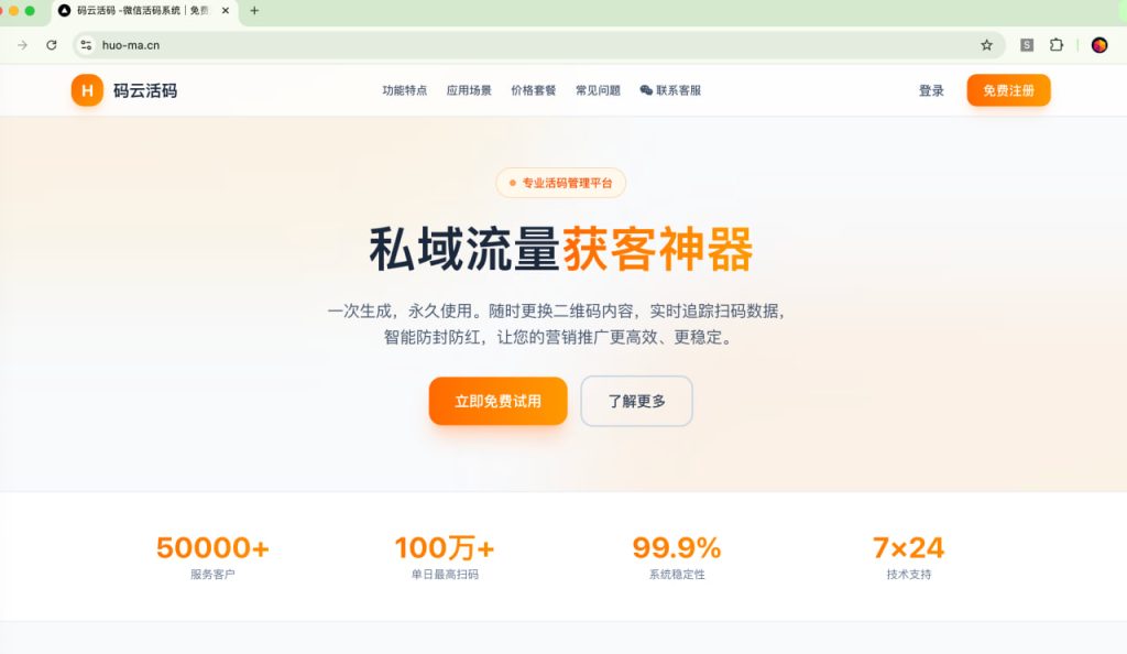现在我们提供免费用户的服务,并且承诺免费到2030年,给真正有需求的朋友们,长期提供稳定的活码系统,比较现在私欲流量获客成本很高,能为你节约成本,我们也很高兴。